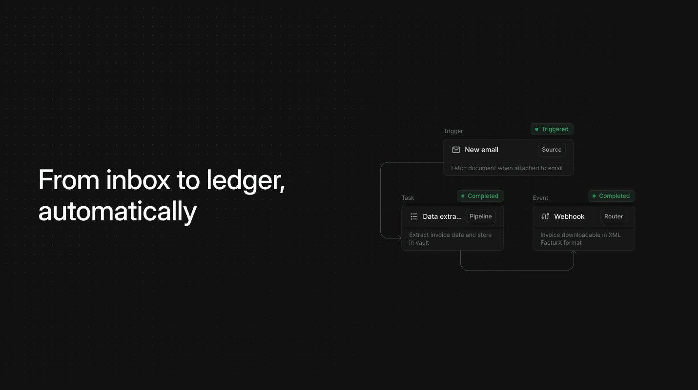 Managing financial data often means juggling tools, inboxes, and storage systems that don’t naturally talk to each other. Workflows brings all of that into one place. It lets you install multiple source connectors to pull invoices, receipts, and financial data directly from the tools you’re already using, whether that’s Gmail, Outlook, WhatsApp, or others.